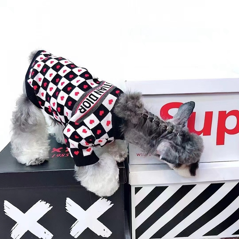 最新入荷するディオールブランドペット保温セーターはシンプルな黒白格と心柄のデザインでファッションな色合いです!DIOR犬ニット服はアクリルの生地も柔らかく、汚れにくく、着心地素晴らしいです。ブランドdior猫秋冬セーターは通気性で、伸縮性で着脱簡単できます。ディオール犬流行りニットコートは抜け毛予防用に部屋着としても使えま、アウトドア、お散歩、お出かけなどに大活躍します!このDiorの犬用セーターはニット素材で作られ、手触りが柔軟で、保温するのが良く、秋冬に入って、ペットさんを暖かくなりましょう。